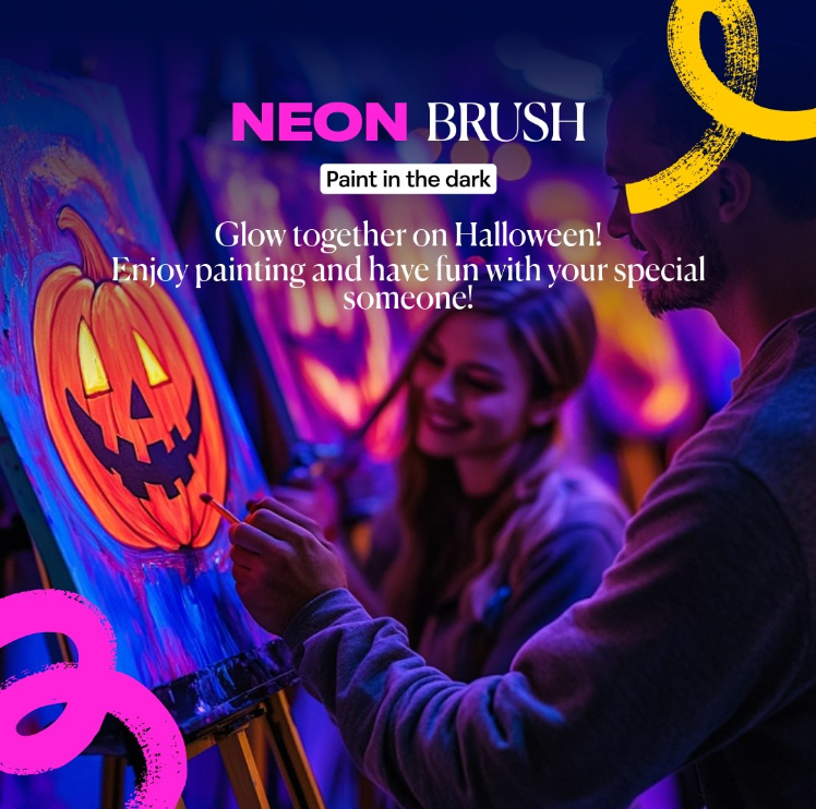⭐ Neon Brush is a painting workshop in a unique retro-futuristic atmosphere. Immerse yourself in a fluorescent neon-lit setting to create your own work of art. Brush in one hand, glass in the other (with or without alcohol), unleash your inner artist! Neon Brush gives you carte blanche to express your creativity, so close your eyes… The experience has already begun!