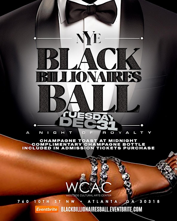 Welcome to the New Years Eve “Black Billionaires Ball” in Atlanta! Join us at the Westside Cultural Arts Center for a night of glamour and celebration as we ring in the new year in style. Get ready to dance the night away, enjoy delicious food and drinks, and mingle with fellow party-goers. Dress to impress in your finest attire and get ready for a night to remember. Don’t miss out on this exclusive event – see you there!